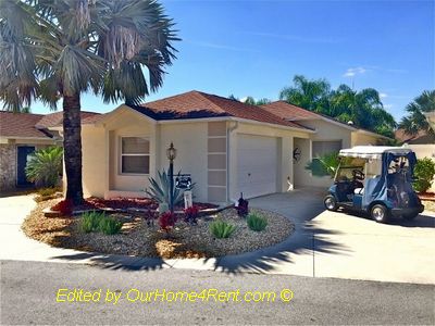 Weekly Rates Available* NO cleaning fee, electric golf cart, village IDs (for monthly rentals), wifi included, 3 recliners! Fully stocked kitchen. INDOOR washer/dryer, 2 car garage. Guests have separate area for privacy.