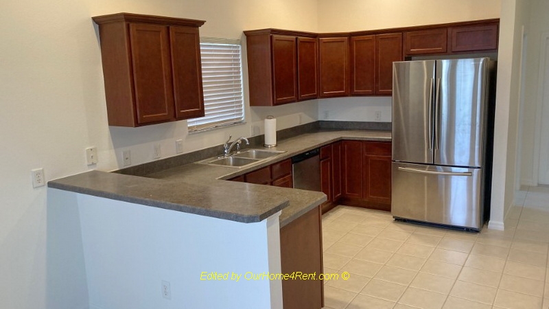 This home has arches as you enter rooms, and the whole house has 10' ceilings so it feels large and open, Kitchen has archway entrances, maple wood cabinets, crown molding, stainless steel appliances, a lazy susan, and pullout drawers. Adjacent eating area in kitchen area overlooks backyard and has vaulted ceilings. Backyard has 2 gorgeous palm trees and a magnolia tree. Laundry room is adjacent to kitchen and comes with washer and dryer. Lanai is 19' by 9', so there is ample room for a table and chairs to be used to enjoy the outdoors.