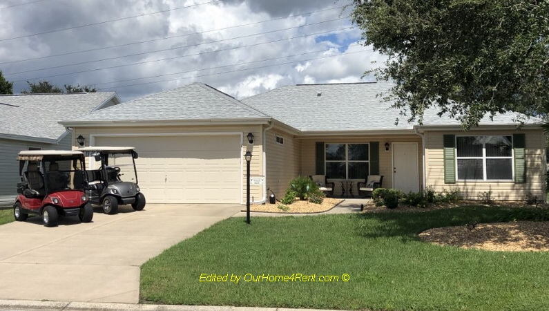 May Price Reduction - GOLF FRONT 3 bedroom / 2 bath fully furnished designer home with Golf Cart, laundry, 2 car garage, Florida room, lanai on the 6th hole T-box of the De la Vista Executive golf course. 5 minutes away from Lake Sumter Landing, Spanish Springs and Tierra Del Sol Country Club.
